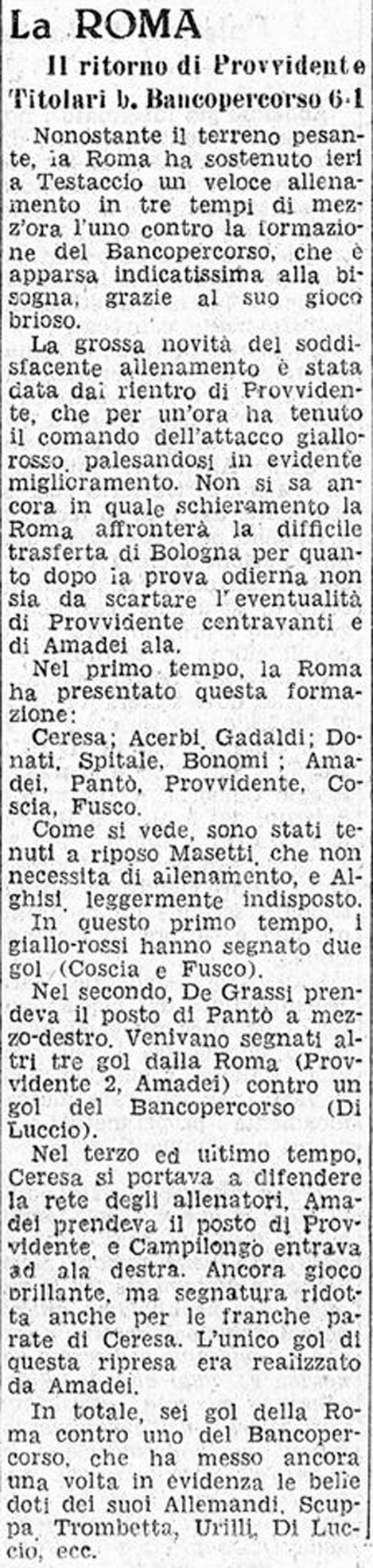 ROMA - BANCO DEL LAVORO 6-1 Roma, Campo Testaccio gioveìaì 18 gennaio 1940 ore: