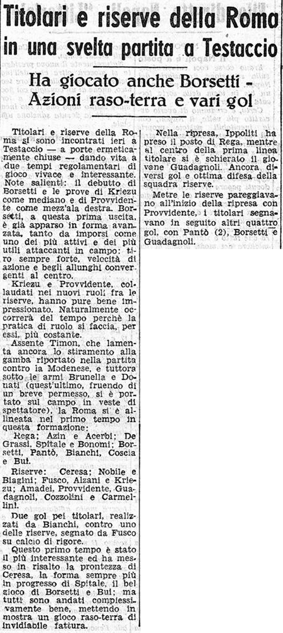 22 settembre 1940 Roma/Brescia 4-3 Vai alla pagina di Roma Brescia |