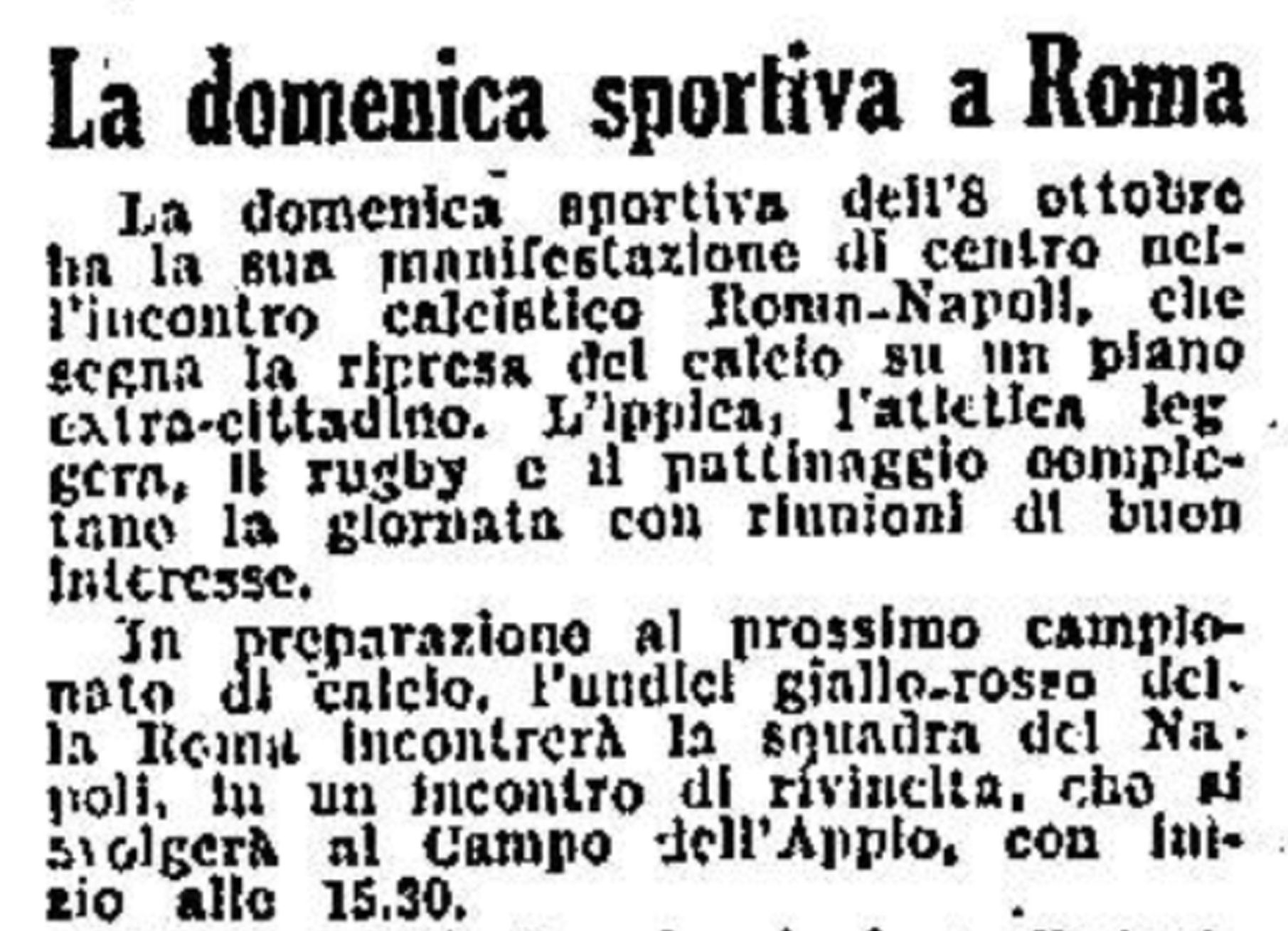 ROMA - NAPOLI 2-2 Roma, Motovelodromo Appio domenica 8 ottobre 1944 ore: 15.30