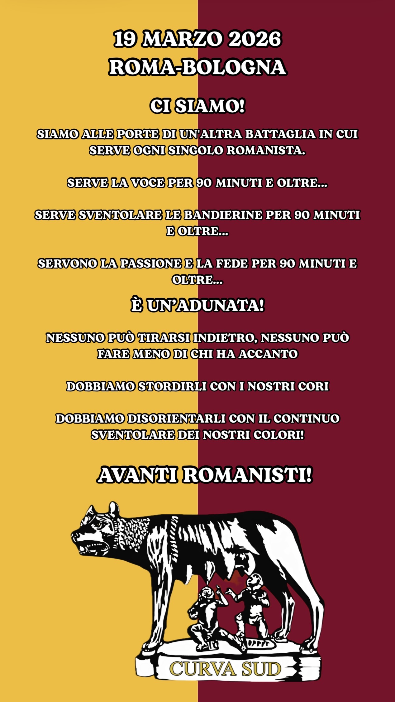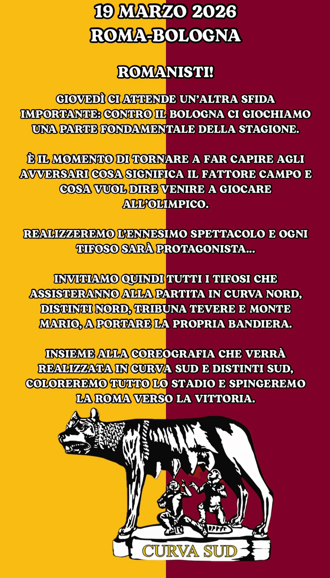in tutti i settori dello stadio verrà organizzata una raccolta fondi tramite i bussolotti. L'obiettivo è sostenere la realizzazione della coreografia del derby e delle prossime scenografie che accompagneranno la squadra da dopo la sfida contro l'Athletic Bilbao. Ogni contributo, piccolo o grande, è fondamentale per continuare a far sì che la nostra curva sia un simbolo di passione e appartenenza. |