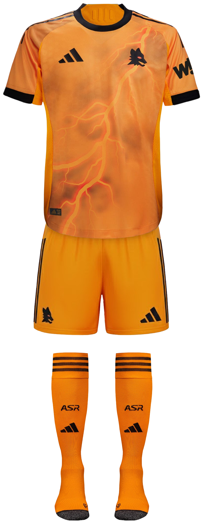 Sponsor tecnico: Adidas Sponsor ufficiale: Fino alla settima giornata SPQR sula maglia. Poi Riyadh Season (da Roma/Servette 5/10/2023) Sponsor sul retro della maglia: Auberge Resorts Particolarità: |